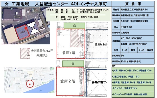 東京都足立区加賀2丁目 74.2坪 貸倉庫・貸工場|L-Net(エルネット)