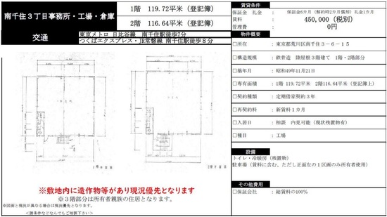 東京都荒川区東日暮里6丁目 72.7坪 貸倉庫・貸工場|L-Net(エルネット)