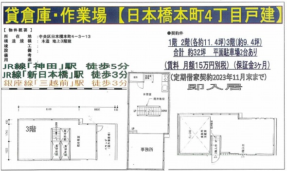 東京都中央区日本橋蛎殻町1丁目4-7 11.5坪 貸倉庫・貸工場|L-Net(エルネット)