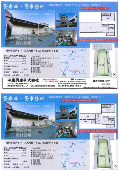 所在地 埼玉県本庄市 西富田字本郷497-1  西富田倉庫