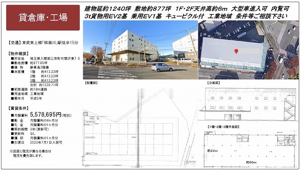所在地 埼玉県入間郡三芳町 大字上富557-1  三芳町上富55坪倉庫