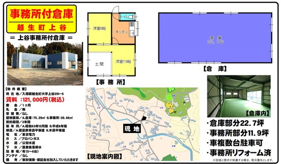 埼玉県入間郡越生町大字上谷291-5 22.8坪 貸倉庫・貸工場|L-Net(エルネット)