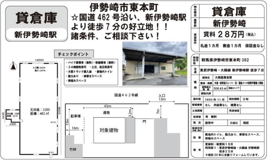 所在地 群馬県伊勢崎市 堀下町575-1  堀下町倉庫