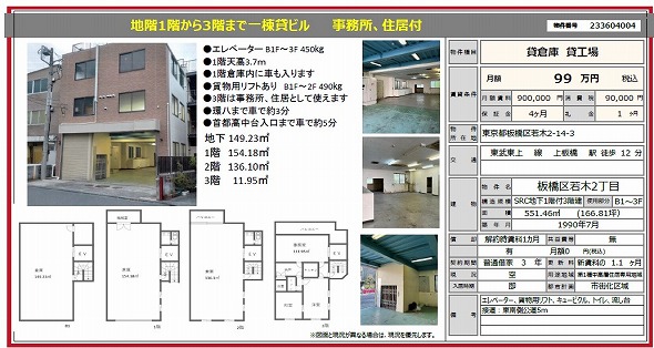 板橋区の貸倉庫・貸工場