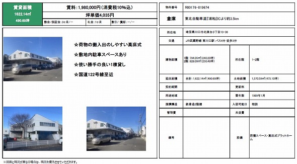 埼玉県川口市大字東本郷 98坪 貸倉庫・貸工場|L-Net(エルネット)