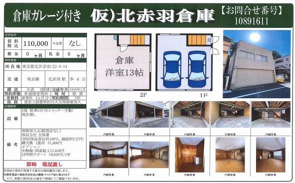 東京都北区昭和町 11.8坪 貸倉庫・貸工場|L-Net(エルネット)