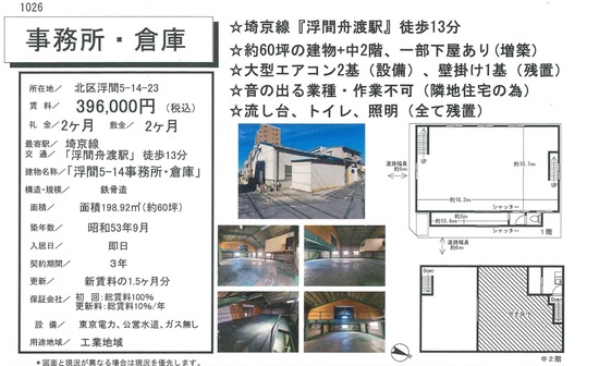 東京都北区浮間5丁目10-1 62坪 貸倉庫・貸工場|L-Net(エルネット)