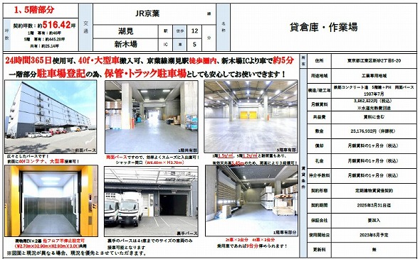所在地 東京都江東区 新砂1丁目5-23  東陽流通センター