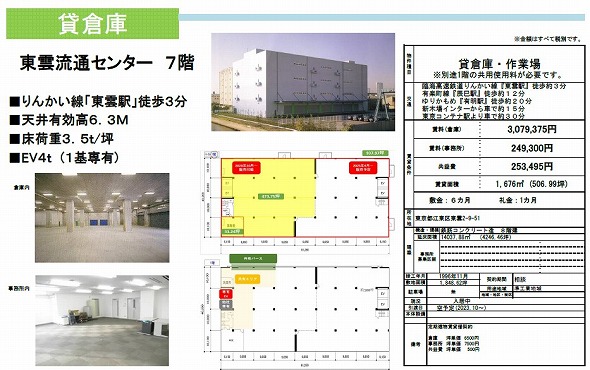 所在地 東京都江東区 東雲2丁目9-51  東雲流通センター