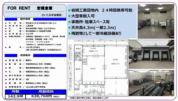 埼玉県さいたま市岩槻区古ケ場1丁目1-2 142.9坪 貸倉庫・貸工場|L-Net(エルネット)