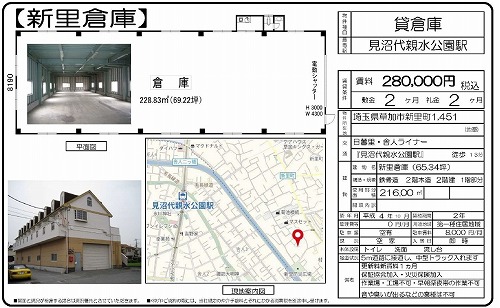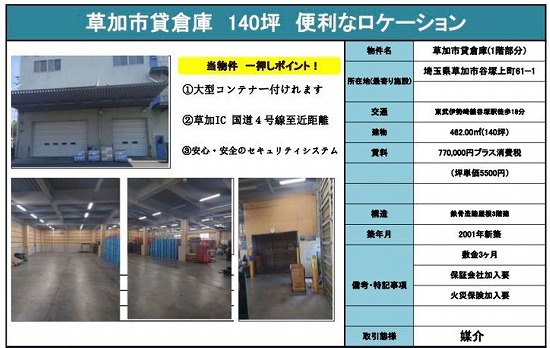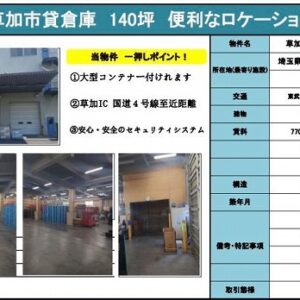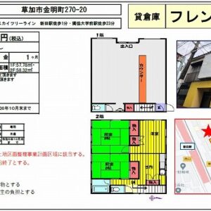 所在地 埼玉県草加市 吉町4丁目5-6  草加市吉町60坪倉庫