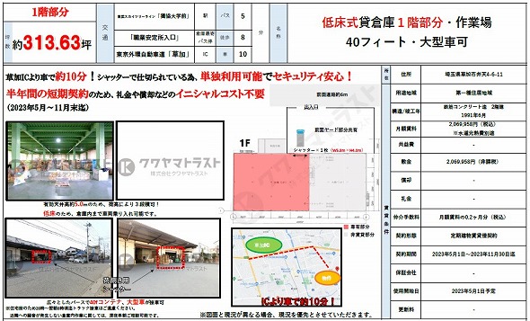 所在地 埼玉県草加市 谷塚町1324  マルマツ倉庫別棟