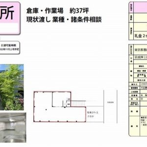 ・倉庫/事務所利用可 ・首都高速6号近く ・無料駐車場あり ・シャッターあり ・土日祝日/24時間利用可能 ・短期契約2年 ・設備 トイレ/電気温水器(残置物) ・付近に銀行、郵便局、ドラッグストア、コンビニ、、スーパー、飲食店あり