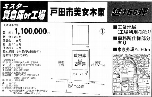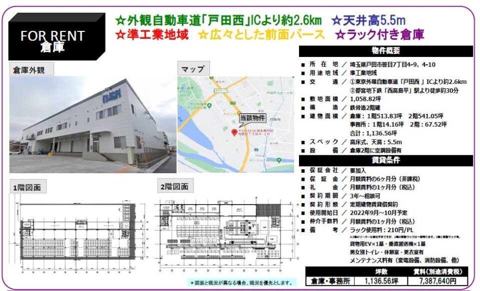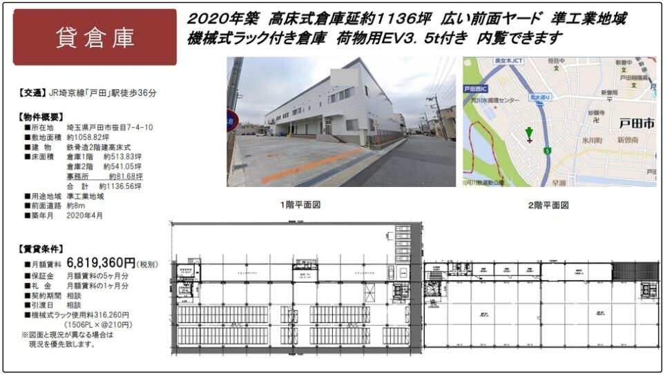 所在地 埼玉県戸田市 美女木東2丁目5-1  美女木東847坪貸倉庫