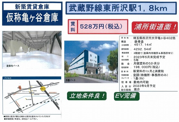 所在地 埼玉県所沢市 大字亀ケ谷402  仮称亀ヶ谷倉庫