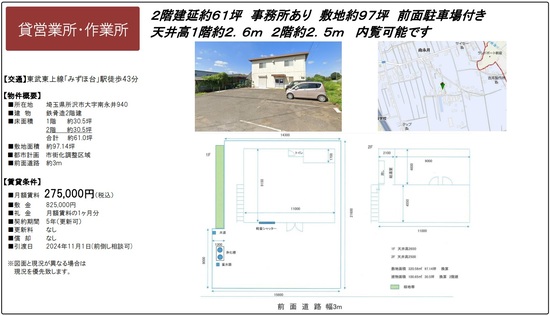 所在地 埼玉県所沢市 北原町866-17  北原町斉藤様倉庫2