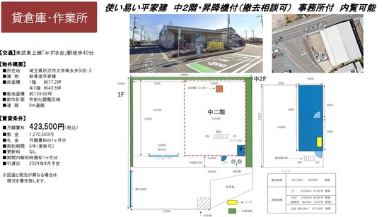 所沢市の貸倉庫・貸工場