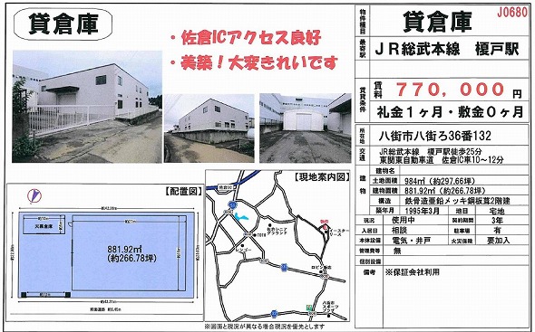 千葉県八街市八街は 302.5坪 貸倉庫・貸工場|L-Net(エルネット)