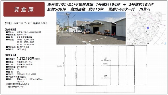 埼玉県八潮市大字南川崎542番地 450坪 貸倉庫・貸工場|L-Net(エルネット)