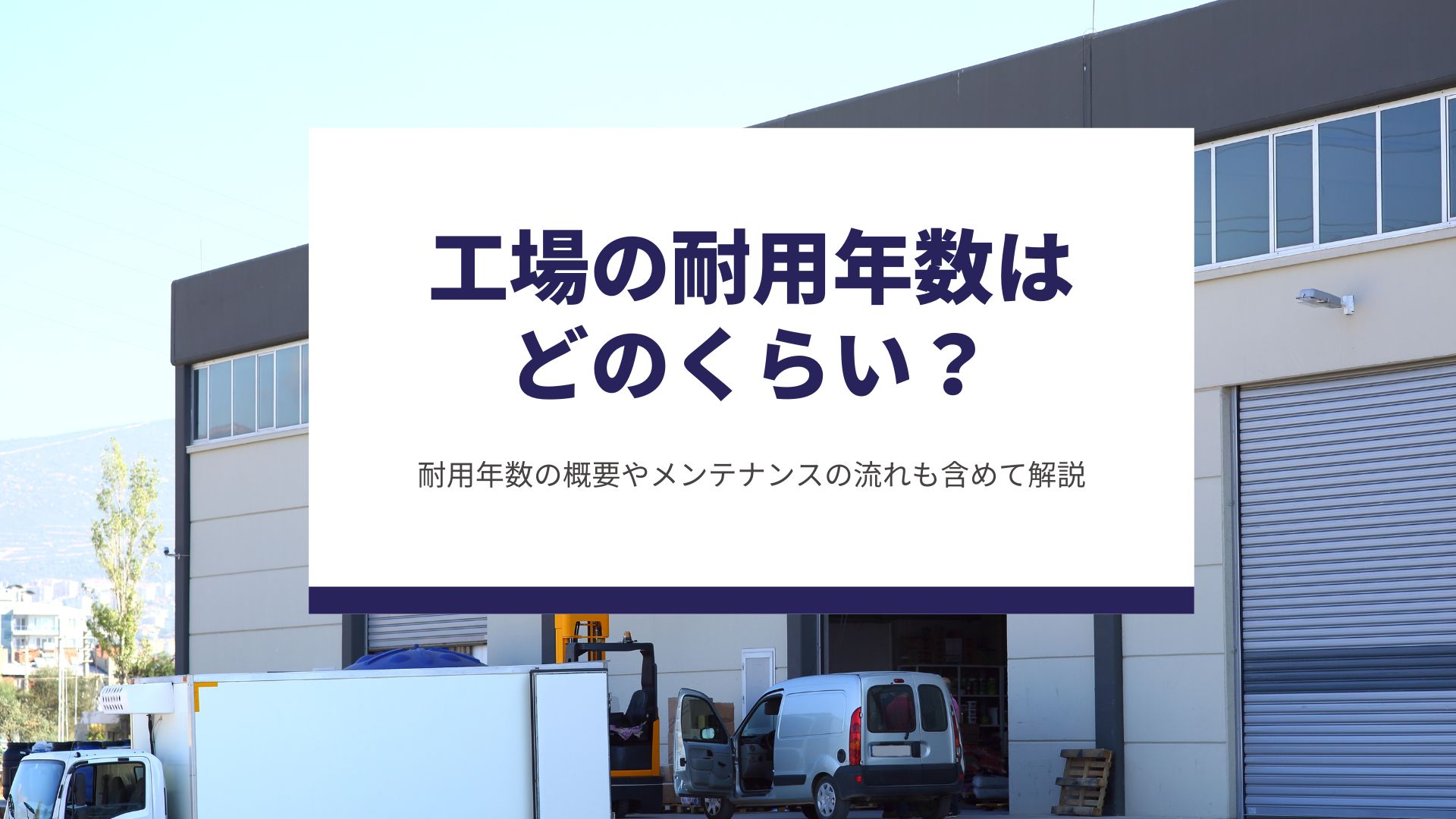 また、工場の生産活動に支障を出さないために、建物の定期的なメンテナンスも必須です。メンテナンスを後回しにすると、万が一の自然災害時などで多大な被害を出してしまう恐れもあります。このように工場の耐用年数を把握することは、節税の対策や適切なメンテナンス時期を判断するための得策になります。耐用年数を知り、工場の適切な運営を行う手立てにしましょう。