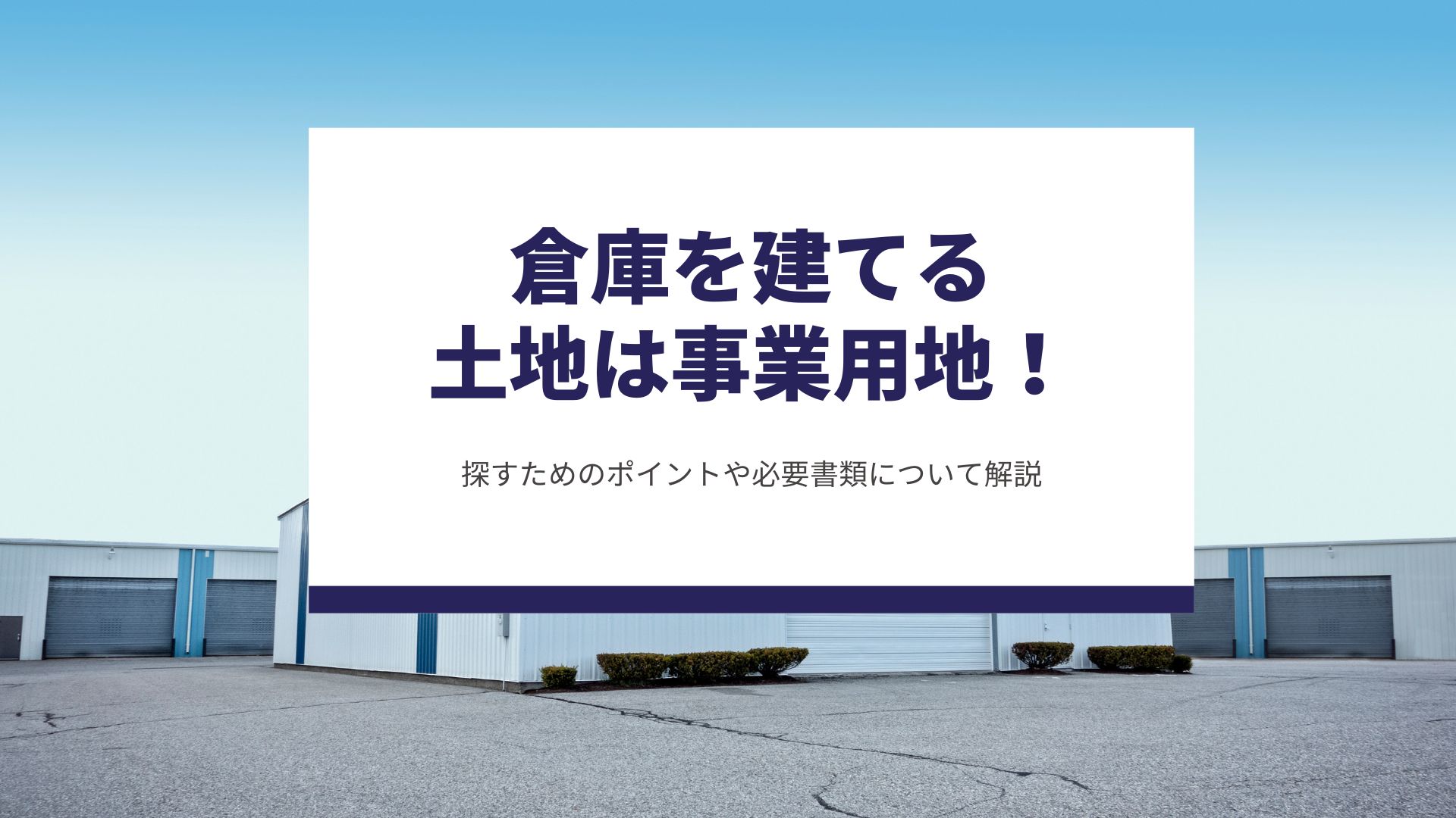 貸倉庫を新たに建てるときに必要となるのは「事業用地」です。事業用地は商用利用できる土地で、倉庫のほかにも事務所や関連施設を建てるときにも事業用地の用意は必須です。